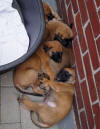 So heute hatten wir die zweite Wurmkur. Hat wieder nicht geschmeckt :( und die Biester spucken jetzt echt hoch und weit ..... aber noch jeder hat die rosa Suppe geschluckt, ging ja nicht anders ;) Wir sind jetzt ganz oft draußen und erkunden mittlerweile den gesamten Garten. Das Haus ist sowieso eingenommen und sogar die Treppe ist bezwungen. Allerdings versuche ich das verzweifelt zu unterbinden. Es muss nicht in allen Etagen von kleinen Gremlins wimmeln ;) Fährten waren wir heute morgen auch schon. Naja nicht ganz aber wir versuchen auch schon mal Trofu vom Boden zu fressen und aus der Hand ja sowieso! Ein Gruppenfoto so wie beim D-Wurf ist irgendwie mit den E´s eine unmöglich zu bewältigende Aufgabe, wie man sieht. Ich habs aufgegeben! Die E-Maliattacks sind für ihr alter sehr fix und immer zu Späßen aufgelegt. Wer mich besuchen kommt den bitte ich um Verständnis, im Moment herrscht Chaos! Aber das ist normal und dauert ja nur 8 Wochen, wir alle genießen es in vollen Zügen! :)