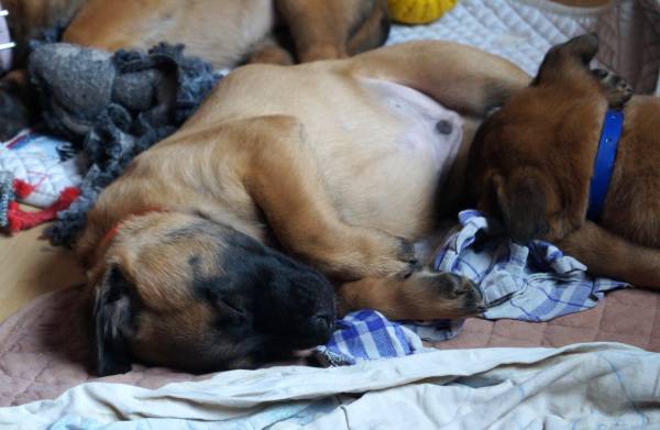 Feeby, Faya und Funky sind die ersten "Auserwählten". Alle anderen müssen sich am kommenden WE festlegen. Ich weis, ist schwer, aber irgendwann muss es sein ;) Am 29. kommt der Tierarzt chippen und impfen, danach am 30. der Zuchtwart und das Wochenende nach Ostern gehts schon an den Auszug. Die Zeit verging wie im Fluge! Die kleinen Maligatoren stellen uns gerade heftig die Bude auf den Kopf und man erkennt jetzt unschwer um welche Rasse es sich handelt :D Wir freuen uns bald auf etwas mehr Ruhe und Ihr werdet dann bald viel Freude und Action bei Euch Zuhause haben :D So. Jetzt werden sie langsam ungemütlich ;) Nachdem die kleinen Ratten mir meine geliebten Ridgipads angefressen haben, gibts jetzt keine Körbchen mehr im Wohnzimmer. Im Wurfraum stehen Liegematten zur Verfügung und im Wohnzimmer müssen jetzt die Pferdedecken reichen. Wobei,.... die Minis schlafen sowieso lieber im Bücherregal :D Die ganze Bande will jetzt eigentlich nur noch draußen sein, nur zum Schlafen kommt man gemeinschaftlich ins Warme, weil es draußen ja noch nicht so wirklich kuschelig ist. So langsam sind die ersten Wahlen gefallen. Frau Gelb, Frau Rosa und Frau Lila sind jetzt definitiv vergeben, so wie es aussieht. Alle anderen Entscheidungen werden sicherlich im Laufe der nächsten Woche fallen und dann rückt auch das Datum der Wurfabnahme und nur wenig später auch der Auszug näher. Wie immer sehe ich dem mit einem lachenden aber auch mit einem weinenden Auge entgegen. Macht schon viel Arbeit so eine Hausaufzucht, aber auch ganz viel Spaß und Freude haben wir hier mit den kleinen Raufbolden! Ich hoffe mal für jeden kleinen Maliattack das passende Zuhause gefunden zu haben und freue mich auf die verbleibenden 2 Wochen mit den F´s ! |