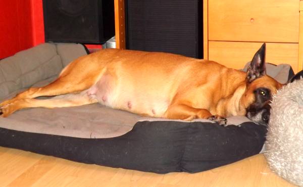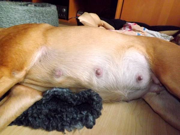 Heute schreiben wir Tag 42 also etwa 6 Wochen nach dem Decktermin (Bauchumfang ca 69 cm) Cera geht das dauernde Fotografieren langsam auf den Keks ;) Ich weis nicht ob das auf den Fotos so gut rüber kommt aber die letzten Zweifel sind nun auf jeden Fall ausgeräumt! Die kleine Maus wird mega fett, das Gesäuge ist geschwollen, die Zitzen vergrößert, weich und rosig. Cera hat einen wunderschönen Babybauch, der stetig etwa 2 cm bis 4 cm die Woche anwächst ! :) Auf vielfachen Wunsch hier mal Hundebauch aus sämtlichen Positionen : Cera geht es unverändert gut. Sie frisst mit Eifer, schläft viel und dazwischen bewacht sie am Fenster den Nachbarshund ;) Sie ärgert nach wie vor unseren