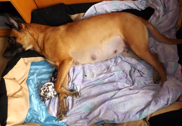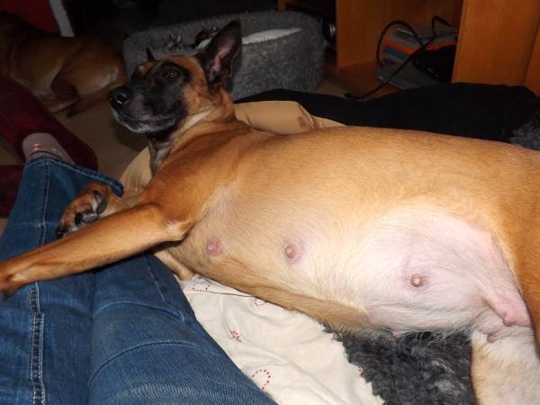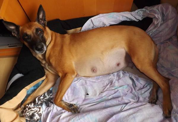 Woche 3 (Bauchumfang ca 56 cm) Cera ist momentan richtig zickig mit anderen Hunden auch mit ihrer Mutter und Hexe. Außerdem schläft sie jetzt mehr als sonst.