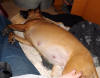 Heute ist der 35 Tag nach dem Decken, ich würde mal vorsichtig sagen, es sieht ganz gut aus! Woche 5 (Bauchumfang ca 64 cm) Cera frisst wieder richtig gut, also den Napf fast mit und egal was! Sie ist immer noch zickig, provoziert die anderen wo sie kann und geht jetzt abends sehr früh ins Bett ;) Sie schläft gerne und viel und sie stöhnt wenn sie sich erhebt. Wir meinen auch der Bauch rundet sich nun merklich. Die Vulva setzt jetzt vermehrt zähflüssigen und glasigen Schleim ab, den man nicht mehr übersehen kann. (37.Tag) Wir gehen jetzt zu Fuß spazieren und fahren nicht mehr mit dem Auto ins Feld damit sie nicht so viel springen muss, weil wir ja doch sehr fürsorglich sein wollen. Cera findet das eher seltsam und im Haus lässt sie sich nach wie vor nicht davon abhalten herum zu springen wie ein Flummi, wenn sie den ungeliebten Nachbarshund hört. Naja Hauptsache wir sind fürsorglich ;)