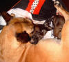 Nach dem Deckakt ist Cera noch mindestens eine Woche bereit sich von jedem der in der Nähe ist besteigen zu lassen! Wir zweifeln langsam daran ob wir auch den richtigen Tag erwischt haben.... Hilft nix ! Für ein Nachdecken ist es zu spät, ansonsten riskieren wir dass die Hündin unterschiedlich weit entwickelte Welpen zur Welt bringt, also Augen zu und durch!