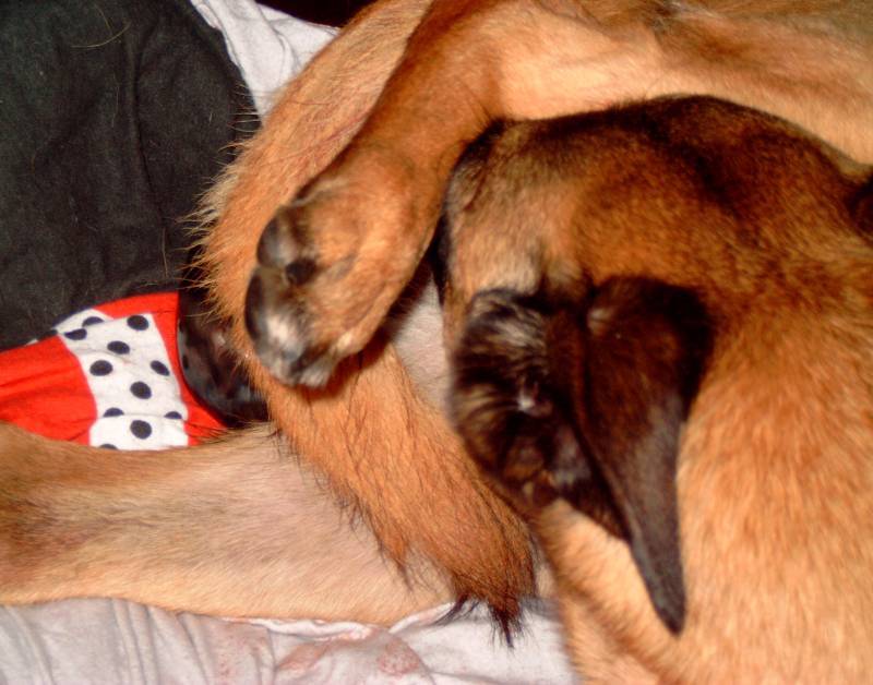 der werdenden Mama ertasten! 9. Woche Tag 61 Cera übt schon mal Kinder hüten ;) So nun Augenpflege! Man sieht, das Cerchen ist recht fit und denkt noch nicht ans Kinderkriegen. Wir haben ja noch ein paar Tage... Dem Nachwuchs scheint es auch recht gut zu gehen, Welpenbewegungen sind deutlich sichtbar, die Vulva ist vergrößert und weich, die Flanken fallen langsam ein. Also Geduld und Ruhe, alles wird gut! ;) Oma-Bijou und Hexe wollten übrigens gleich wieder rein die haben genug vom Winter und lassen es sich gut gehen an der Heizung und sie haben sich lieb! :) Tag 58 Wer mal 3 Minuten zum Entspannen hat : Höhensonne genießen und Kraft tanken! Cera wird ruhiger und nestgebunden.