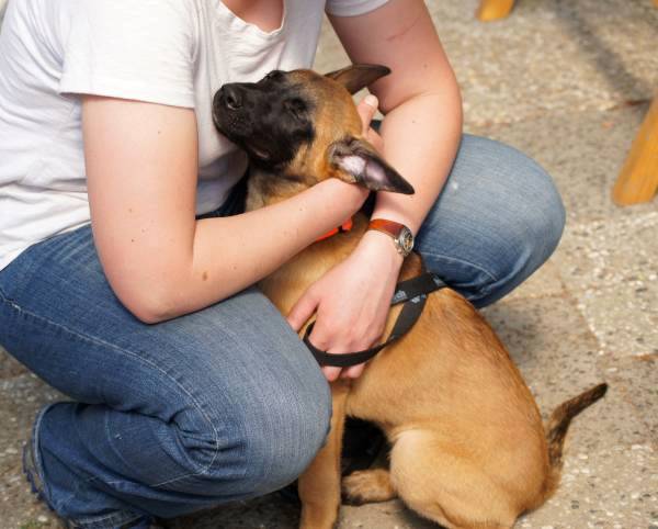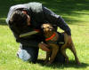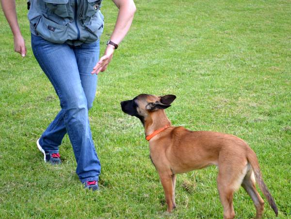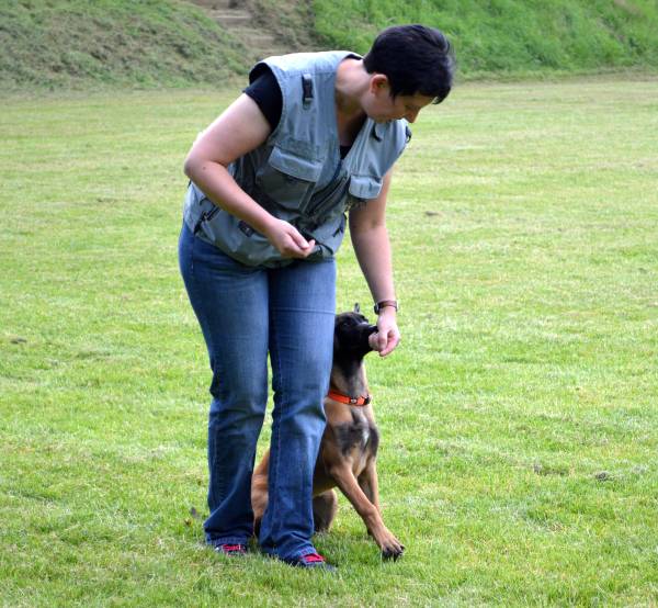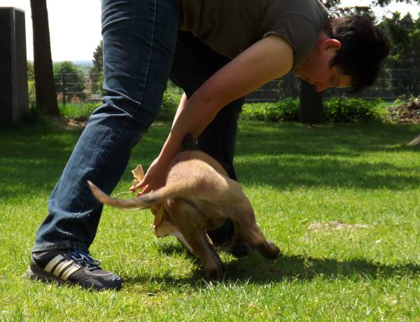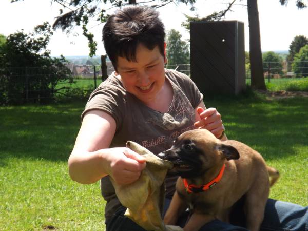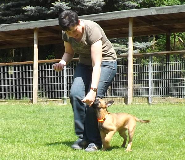 Dizzy lernt im freien Spiel nicht nur Beute machen sondern auch gemeinsam mit dem HF zu spielen. Dies soll die Basis sein für eine gute Kommunikation und für bedingungsloses Vertrauen im Hund/Hundeführerteam! Dizzy macht viel Körperkontakt und lernt so, dass dieser niemals schlechtes bedeutet, sie lässt sich anfassen und kontrollieren und bringt sogar die Beute zum gemeinsamen Spiel zum HF zurück.