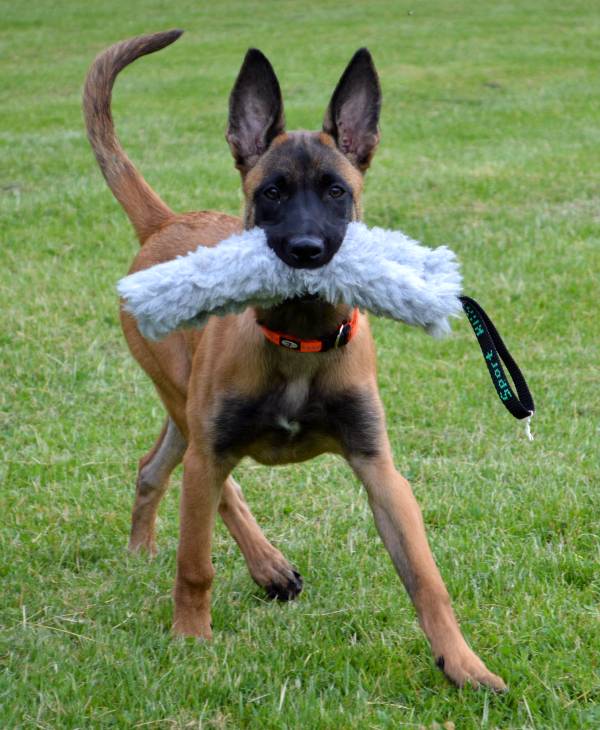 Erste Schritte in Richtung Abteilung B mit 10 Wochen Wir lernen Blickkontakt aus jeder Position Futtertreiben, Grundstellung einnehmen und Blickkontakt zum HF Hereinrufen, Vorsitz und Blickkonkontakt Positionen, Sitz/Platz/Steh Teilweise schon mit Distanz zum HF Spielkram ;) Körperkontakt ohne Konflikt Neues Spielzeug, alles meins!! Die Kleine lernt schnell und hat viel Spaß am gemeinsamen Tun! Dizzy zeigt sich innerhalb gewohnter Umgebung absolut offen und frei, spielt und arbeitet über Futter und Beute sehr gut mit, macht in Beute ruhige und feste Griffe. In fremder Umgebung braucht sie ein wenig Zeit zum auftauen, ist entsprechend ihres Alters sehr schnell abgelenkt und findet alles neue ungeheuer interessant. Dizzy geht freundlich und offen auf Menschen zu und hat keinerlei Scheu vor lauten Geräuschen oder anderen Umwelteinflüssen. Mit anderen Hunden ist sie etwas skeptisch, dauert aber auch da nicht lange bis sie anfängt frech zu werden ;) Wenn ihr etwas nicht passt, oder sie was nicht abgeben möchte, kann sie sehr energisch werden, heißt man muss auf seine Finger aufpassen und ihr hin und wieder ein paar Grenzen zeigen. Sie kann da echt gemein werden sowohl mit anderen Hunden als auch mit uns Zweibeinern. Dizzy verfügt über ein sehr ausgeglichenes Wesen und ist nicht hektisch oder nervig, trotzdem ist sie energiegeladen, immer unterwegs und hält uns und die anderen Vierbeiner im Rudel mächtig auf Trab. |