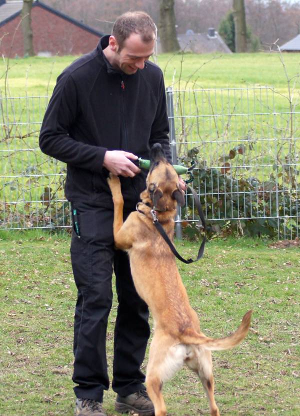 Diva im Alter von 11 Monaten zu Besuch bei den Maliattacks Diva ist eine kleine, drahtige Hündin mit dem Herzen am rechten Fleck! Sie ähnelt sehr ihrer Oma Bijou avec esprit :) Verfügt über ein klares, freundliches und sicheres Grundwesen und zeigt sich energiegeladen und arbeitsfreudig in der Abt. B. Diva arbeitet in hoher Beuteaggression, lässt sich leicht führen und zeigt wuchtige, energische Anbisse! Die Griffe sind stets ruhig, fest und voll. Eine tolle Hündin mit einer enormen Grundschnelligkeit, ganz klasse vorbereitet, aufgezogen und sozialisiert! Vielen Dank für die tolle Aufzucht und Ausbildung, weiter so!